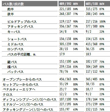 それではマイボール時、すなわちパスに関するデータはどのような変化を見せたのだろうか。マリ戦の反省から単純に蹴りこむのではなく、つなぐべきところでつなぐ意識はプレーデータに反映されていたのだろうか。