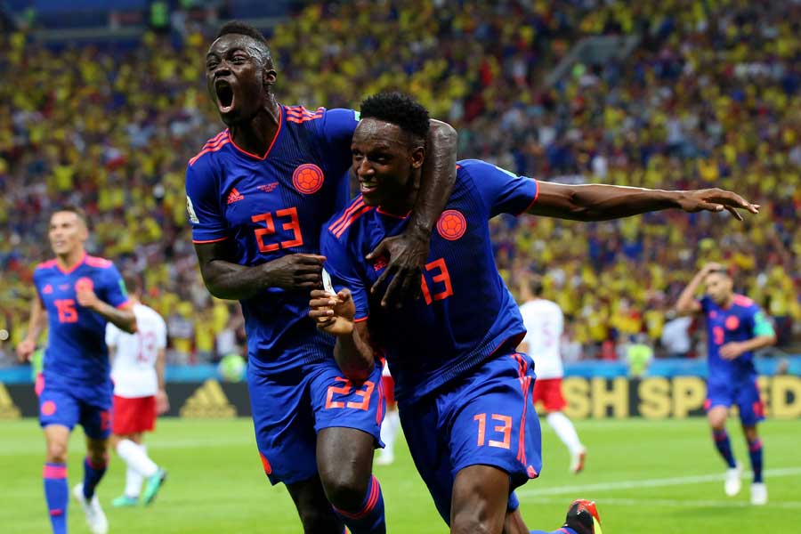 コロンビアがポーランドに1-0リードで後半へ 負傷交代のアクシデントもミナが先制弾