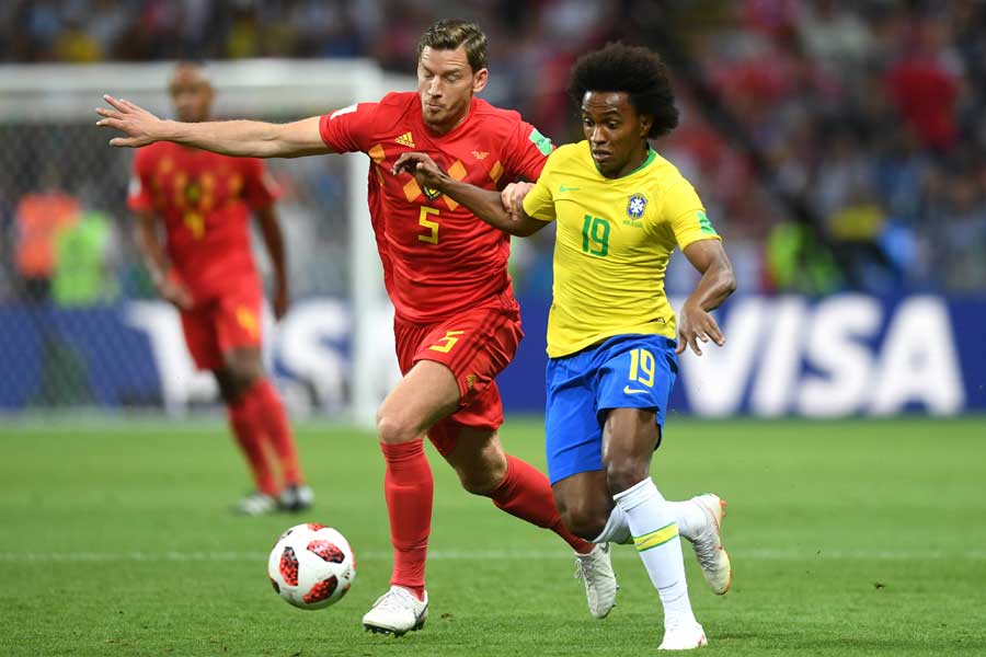 相手のオウンゴールとMFケビン・デ・ブライネの強烈な一撃で2点のリードを奪ったベルギーは、ブラジルの反撃を1点にとどめた。守備の不安を指摘されていたなか、今大会を通して使ってきた3バックから4バックにシフトし、強固なブロックで攻撃をはね返した。