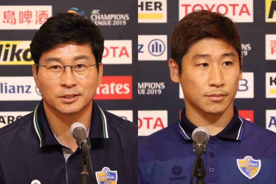 浦和レッズとAFCチャンピオンズリーグ(ACL)のラウンド16で対戦する蔚山現代(韓国)は、19日の初戦を控えて前日会見を実施。Jリーグでもプレー経験のあるキム・ドフン監督とFWイ・グノは、ともに一戦必勝の姿勢を強調した。