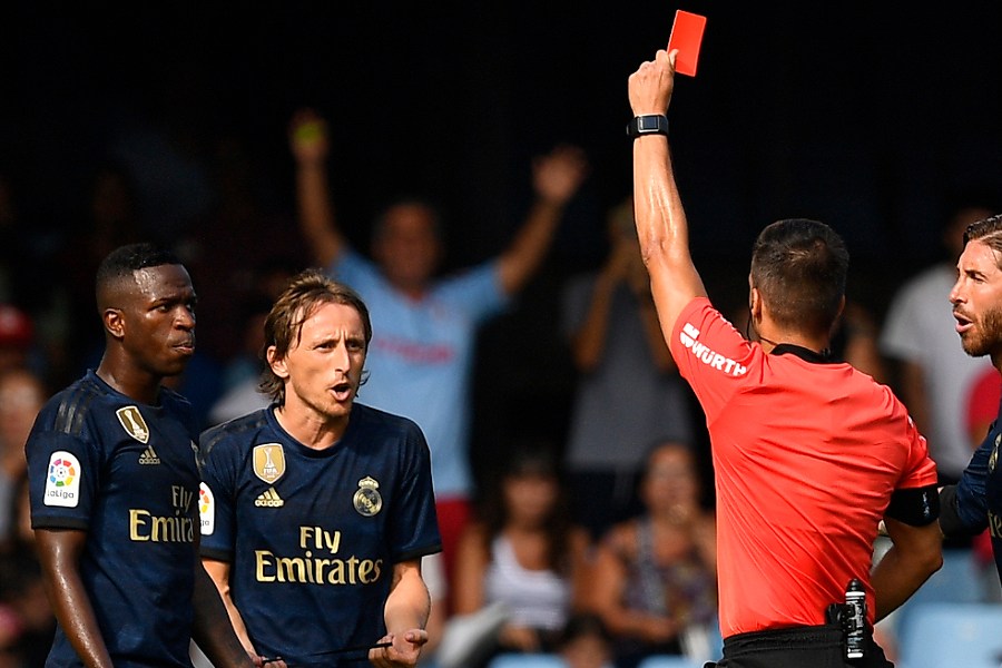 レアル・マドリードのクロアチア代表MFルカ・モドリッチは現地時間17日、リーガ・エスパニョーラ開幕節セルタ戦(3-1)で後半11分にスペイン人MFデニス・スアレスの足を踏みつけて一発退場となった。スペイン紙「AS」はアキレス腱付近への危険なタックルに対して、今季は厳しい処分が下されるとの審判団の見解が報じられている。