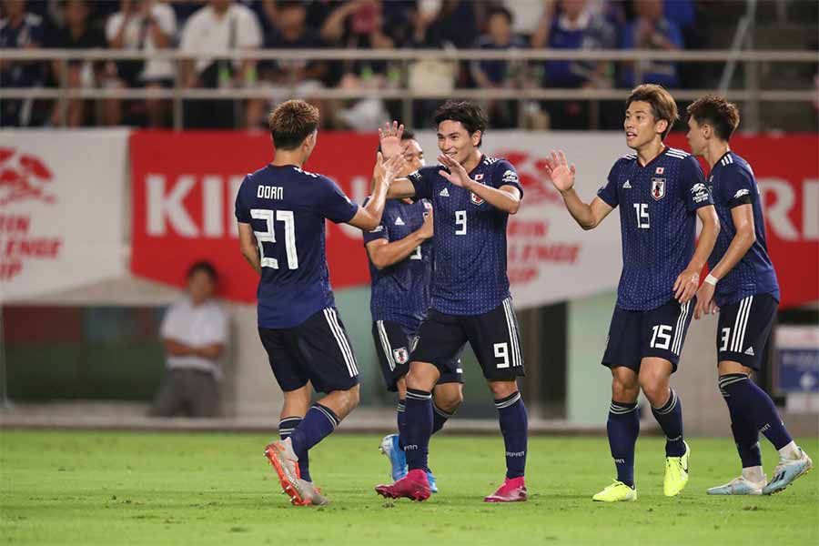 森保一監督は5日に日本で行った国際親善試合パラグアイ戦とまったく同じスタメン11人を送り込んだ。試合前から東南アジア特有の豪雨スコールに襲われたピッチは、たっぷりと水分を含んだ状態で始まった。