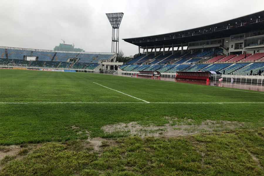 合宿初日の練習場は天然芝ではなく、雑草が生えぬかるんだピッチ。翌8日は同所での練習予定だったが、急きょ変更して天然芝の試合会場で調整した。選手は口々に「昨日よりマシだった」と話したが、試合当日は“お約束”の悪天候。W杯予選は難しい戦いになることが多いが、ピッチ状況も最悪のなか、日本代表にとって集中力の高さと確実な決定力が求められる一戦となりそうだ。