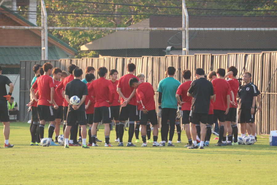 タイで開催中のU-23アジア選手権に参加している森保一監督率いるU-23日本代表は、グループリーグ敗退が決定したシリア戦(1-2)から一夜明けた13日、バンコク市内で練習を行った。前日の先発選手と疲労を考慮されたGK小島亨介(アルビレックス新潟)は宿舎で調整。控え組だったフィールド選手10人とGK谷晃生(湘南ベルマーレ)がピッチで約1時間半汗を流した。