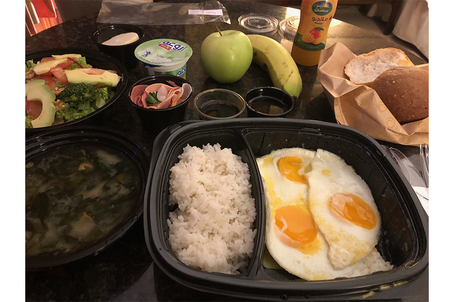 チェックイン後は空港到着時に受けたPCR検査の結果が出るまで、選手もスタッフも全員が部屋で待機。朝食と昼食は各部屋に運ばれてきたのですが、2食合わせて計5つの目玉焼きが出てきたことには驚きました。それでも、日本人の口に合わせて醤油を用意していただいており、美味しくいただくことができました。