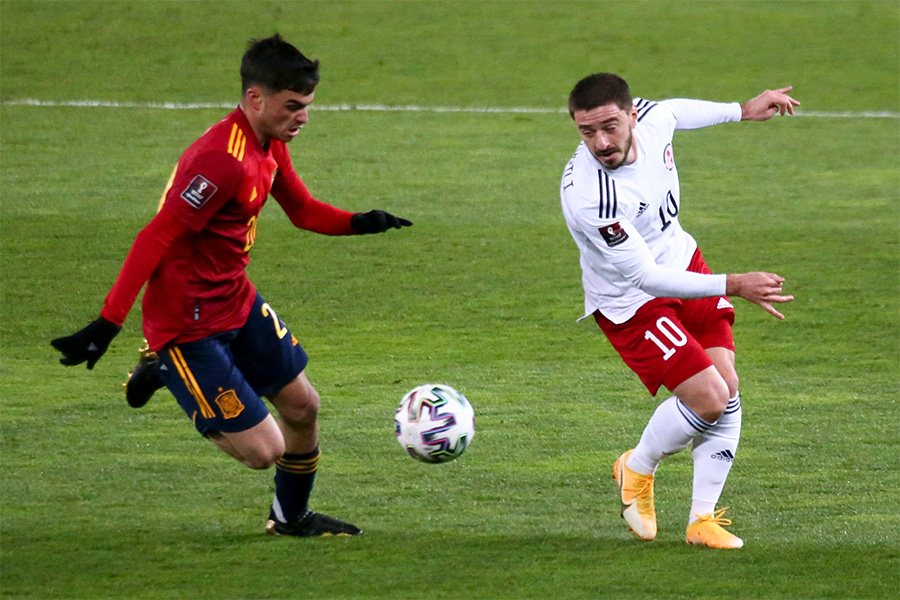 スペイン代表は現地時間28日、カタール・ワールドカップ(W杯)欧州予選グループB第2節でジョージアと対戦し、後半アディショナルタイム(AT)の決勝ゴールで2-1と辛勝した。今予選初勝利をあげたなか、海外メディアは18歳新星MFが試合中に受けた“危険タックル被害”の瞬間に関する反響が拡大している。
