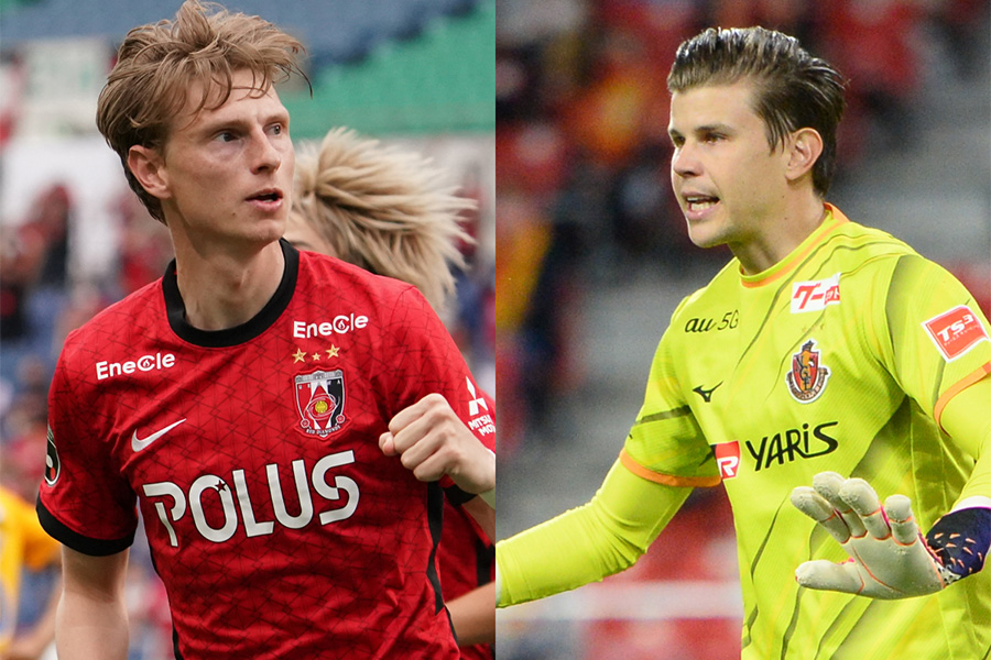 浦和レッズのデンマーク人FWキャスパー・ユンカーと名古屋グランパスのオーストラリア人GKミチェル・ランゲラックは、5月30日に行われたJ1リーグ第17節浦和対名古屋(0-0)でともに先発出場を果たした。両者にとって、これが日本での“初対決”となったなか、Jリーグ公式ツイッターがアップした2ショットに、現役Jリーガーも反応している。