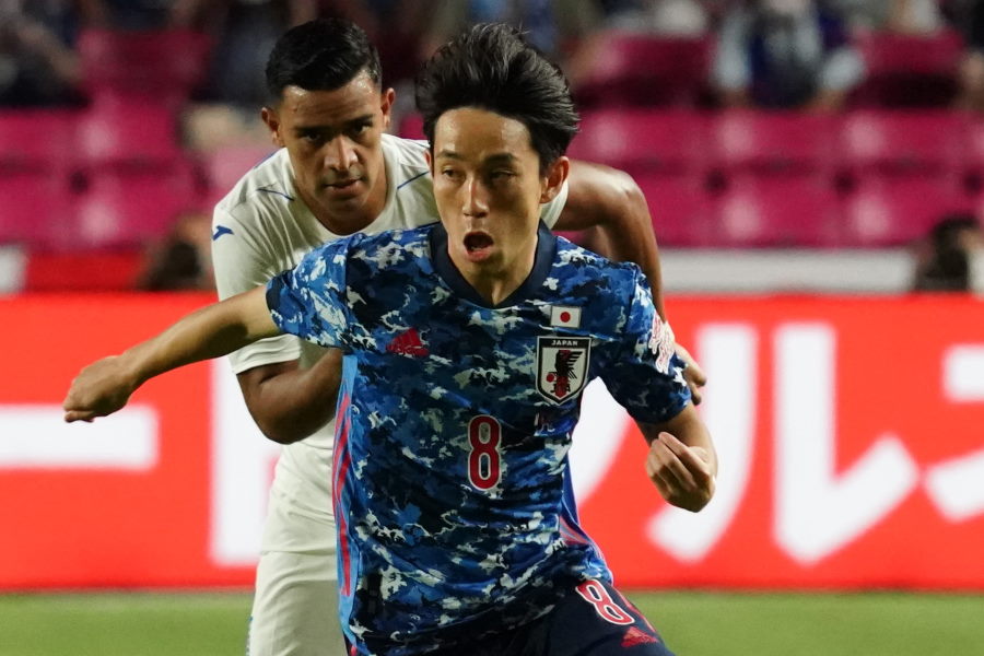 その後もホンジュラスに良い形の攻撃を許さなかった日本は前半40分、DF冨安健洋(ボローニャ)が出足の良いカットから攻撃参加して左サイドから中央にパスを送ると、FW林大地(サガン鳥栖)が得意のポストプレーでつなぎ、堂安が流し込んで追加点。2-0とリードを広げて、ハーフタイムを迎えた。