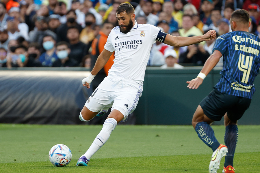 スペイン1部レアル・マドリードは現地時間7月26日、親善試合でメキシコ1部クラブ・アメリカと対戦し、2-2で引き分けた。レアルの1点目となったフランス代表FWカリム・ベンゼマのゴールシーンをスポーツチャンネル「DAZN」が公開すると、「神がかりすぎ」「ベンゼマさま健在」「無慈悲」「ズルすぎる」など称賛の声が寄せられている。