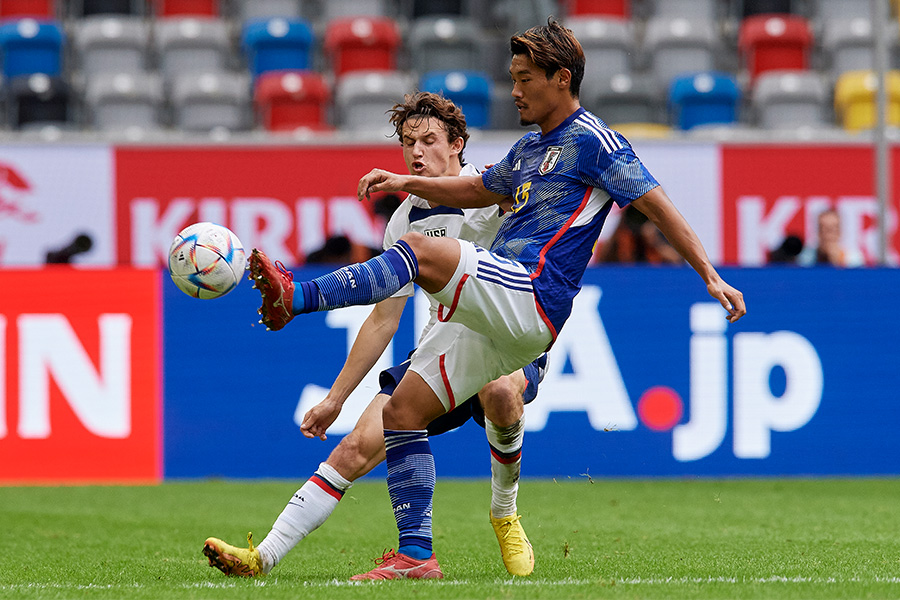 森保一監督率いる日本代表は9月23日、ドイツ・デュッセルドルフでのキリンチャレンジカップでアメリカ(FIFAランキング14位)と対戦し、MF鎌田大地、後半から出場したMF三笘薫の得点で2-0の勝利を収めた。この試合でフル出場し攻守に貢献したMF守田英正がブラジルメディアはチームトップの評価に。ともに中盤を支えた相棒にも次点で高評価を与えて称賛を送っている。