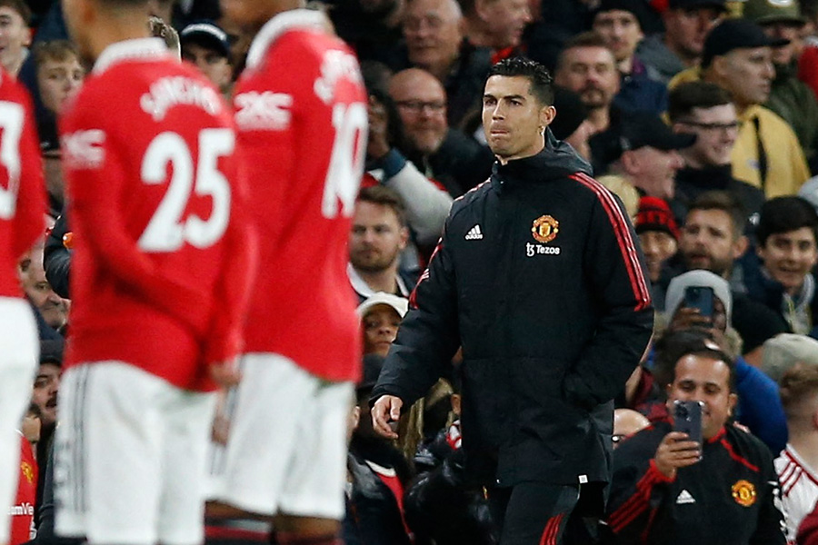 そして、現地時間10月19日に行われた第12節トッテナム戦でのロナウドの振る舞いが波紋を広げている。ベンチスタートだったロナウドは試合終了のホイッスルが鳴る前に足早にドレッシングルームに引き上げてしまったのだ。チームが2-0の勝利に沸くなかで、それに水を差す行為だったと批判の対象になった。英メディアによれば、ロナウドはエリック・テン・ハフ監督の呼びかけに応じず、途中出場を拒否したとも伝えられていた。