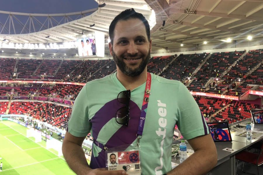 このスタジアムは、日本とコスタリカの試合が行われた場所。取材を開始すると、日本のサポーターとゴール裏で一緒にゴミ拾いをしたというボランティアのハリームさんと出会えた。