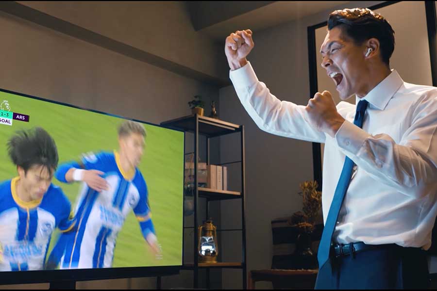 この映像は、イングランド1部プレミアリーグの2022-23シーズンのオリジナルムービー。槙野氏が自宅の大画面テレビでまるでピッチにいるかのような熱量でプレミアリーグを観戦する様子とともに、ナレーションとして本田圭佑氏の声真似をしたマキヒカ氏が出演している。