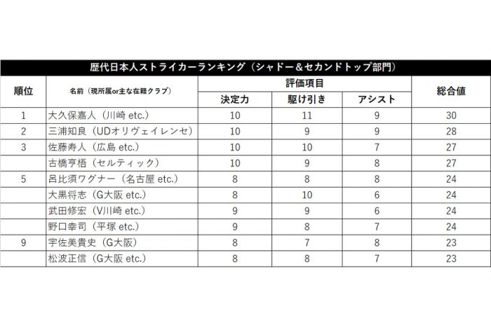 歴代日本人ストライカー「シャドー&セカンドトップ」TOP10 大久保、三浦カズ、古橋…“最高レベル”の1位は?