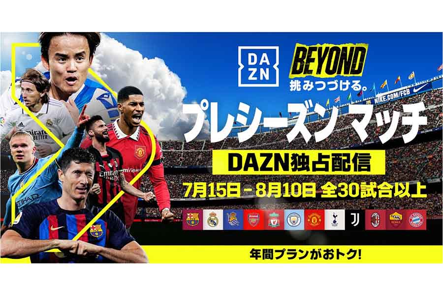 スポーツチャンネル「DAZN」は、現地時間7月22日からアメリカで開催される「Soccer Champions Tour 2023」の全試合をライブ配信することを発表した。また15日以降、新シーズンを前に各地で行われているフレンドリーマッチもライブ配信する。
