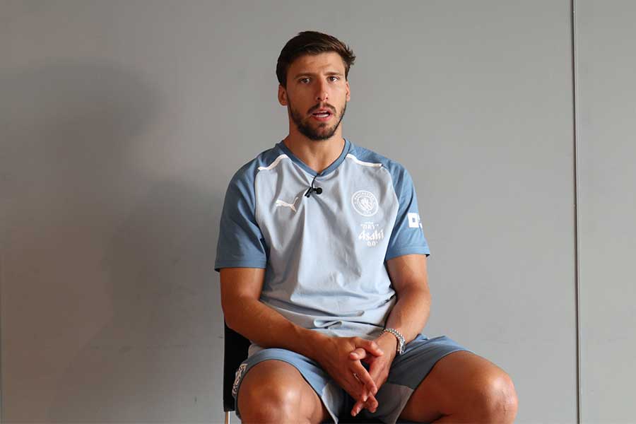シティはプレシーズンツアーで来日。日本では、23日に横浜F・マリノス、26日にバイエルン・ミュンヘンとの対戦を控えている。ノルウェー代表FWアーリング・ブラウト・ハーランドやベルギー代表MFケヴィン・デ・ブライネを筆頭に、サッカー界を代表するトッププレーヤーが20日の夕方から日本入りしているなか、翌日の昼から取材を受ける過密日程の中で、単独で応じたディアスは疲れを見せることなく終始笑顔を見せていた。