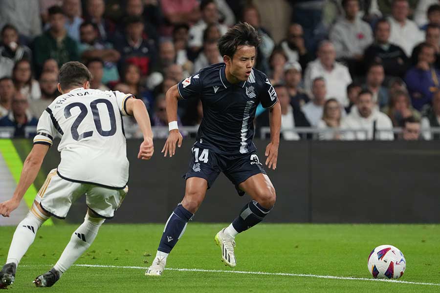 スペイン1部レアル・ソシエダは9月17日、ラ・リーガ第5節でレアル・マドリードと敵地で戦い、1-2の逆転負けを喫した。日本代表MF久保建英は2トップの一角としてフル出場を果たし、FWアンデル・バレネチェアの先制点をお膳立て。さらにオフサイド判定で“幻”となったがカットインから強烈なミドルシュートを放った。そのなかでもポルトガルメディア「maisfutebol」は前半終了間際に見せたレアルMFトニ・クロースへの股抜きに注目している。