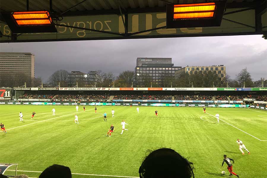 屋根にヒーターを付けたスタジアムも多い。大きめのスタジアムほど、ヒーターの効きは悪くなるが、フィリップス社との関係が深いPSVのスタジアムは収容人員3万5000人でも冬の寒さを忘れさせる暖かさだ。VVV(8000人)、エクセルシオール(4500人)の小ぶりなスタジアムはヒーターが効きすぎて、雪の試合でもコートを脱ぎたくなってしまうほど。一方、今季のNECナイメヘンは零下のナイトゲームでもヒーターを付けてくれない。もしかすると光熱費高騰が影響しているのかもしれない。