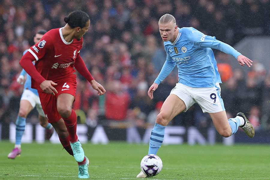 そのなかでもハイライトだったかもしれないのが前半39分、アーリング・ブラウト・ハーランド対フィルジル・ファン・ダイクの1対1だ。