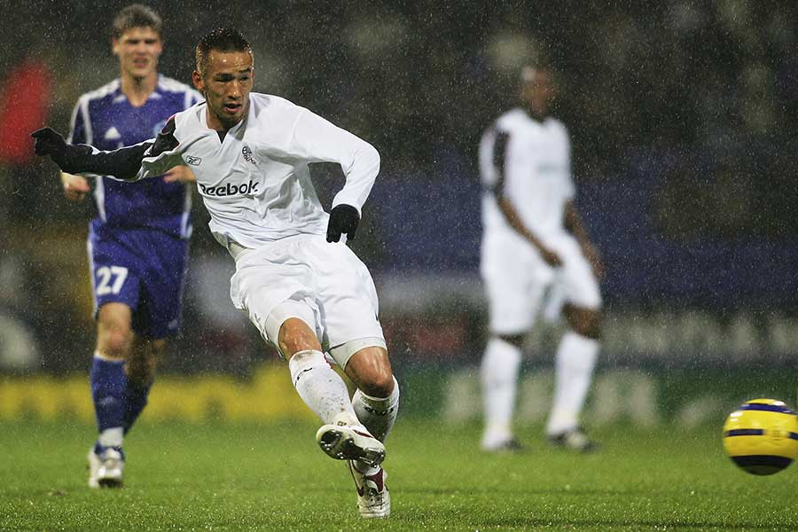 最も肝心なプレミアのピッチ上でも、“世界基準”の能力は確認された。初のマン・オブ・ザ・マッチ選出は、第7節ポーツマス戦(1-0)。前節後半にベンチを出てデビューを果たした翌週、移籍後初先発でのことだ。ボルトンでの初ゴールは、第10節ウェストブロミッジ戦(2-0)。ゴール右約17メートルの位置で自ら奪ったFK(フリーキック)を左下隅にカーブをかけて蹴り込んでいる。中盤中央で並んだケビン・ノーランが決めた2点目も、コーナーフラッグ付近でルースボールをものにした中田のプレーに端を発していた。