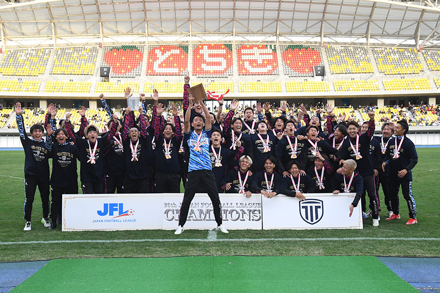 それでも「少しずつ慣れていって、自分たちのサッカーができるようになった」と内田。今矢監督も「選手も、私たちスタッフも、この1年ですごく成長したと思う」と話した。第13節以降は快進撃。独走状態だった高知をとらえて逆転した。この日は6ゴールで鈴鹿にリベンジ。17試合負けなしで優勝とJ3昇格を手にした。