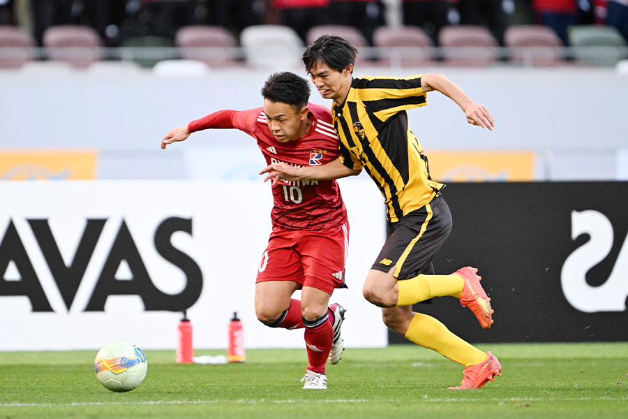 一方、名門の流経大柏は3年ぶり8回目の本戦出場。湘南ベルマーレ内定のFW松本果成(3年)が右サイドバックとして今大会初スタメンを飾った。カターレ富山内定のドリブラーMF亀田歩夢(3年)、すでに4得点中のFW山野春太などタレントの揃った強豪相手に、東海大相模は接戦を繰り広げる。