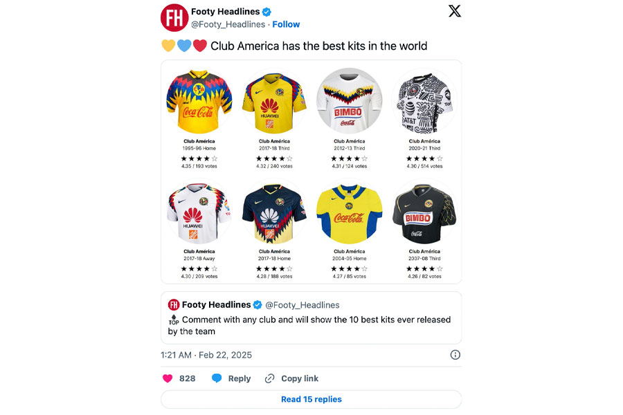 メキシコの名門クラブ・アメリカの色鮮やかなユニフォームに注目が集まっている。サッカーシャツに関連に特化した海外メディア「Footy Headlines」は、2026年からサプライヤーがナイキからアディダスに変更になることをリーク。これまでのデザインを「世界最高のユニフォーム」と紹介した。