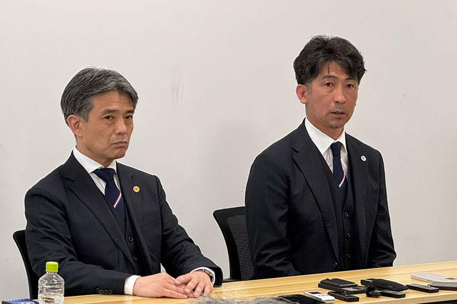 横浜F・マリノスは4月19日、スティーブ・ホーランド監督の解任を受けて、横須賀市内のクラウハウスで、中山昭宏社長、西野努スポーティング・ダイレクター(SD)が会見した。