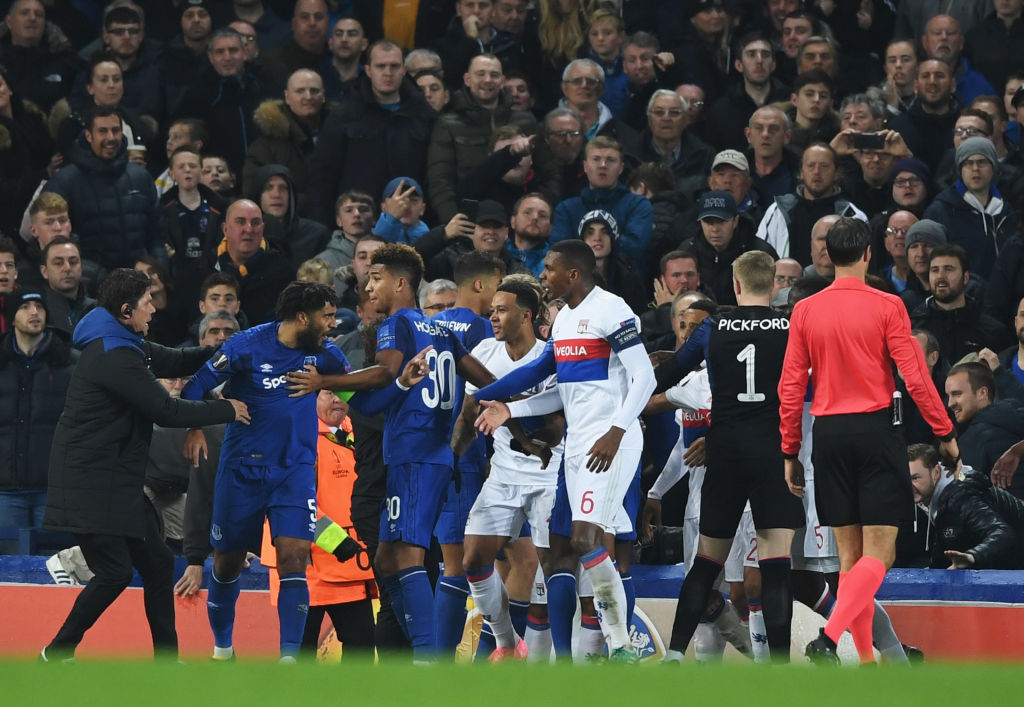 EL第3節エバートン対リヨン戦、後半に両軍入り乱れてエキサイト