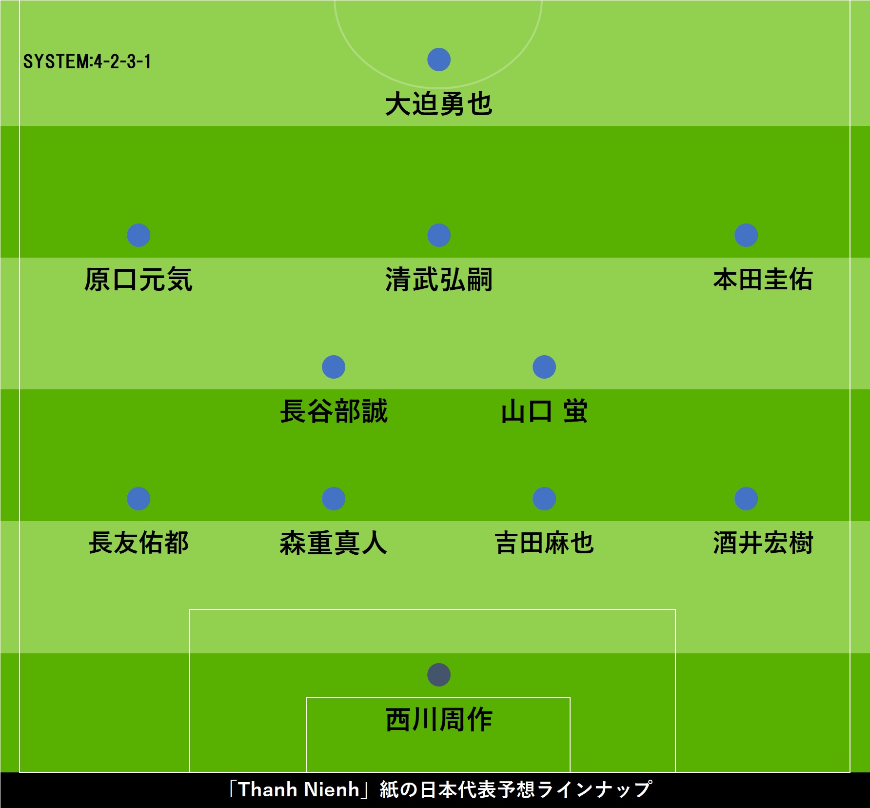 チームの“スター”として、岡崎と本田の二名をピックアップ。「オカザキは日本で最も人気のある選手の一人。残念ながらレスターでは2015-16シーズンの奇跡の優勝以来、重要度は落ちているが、代表で111試合50ゴールを記録しているストライカーだ。ホンダはアジアで最高のミッドフィールダーで、イングランドのベッカムのようなキックを持っている。彼の経験は依然として日本に役立っている」。本田については元イングランド代表MFデビッド・ベッカムを引き合いに出して、キック精度の高さを称えている。