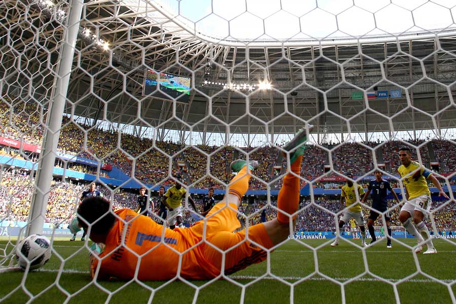 ボールを止めた場所はやはり… 日本代表GK川島永嗣がキンテーロに直接FKを決められた瞬間【写真:Getty Images】
