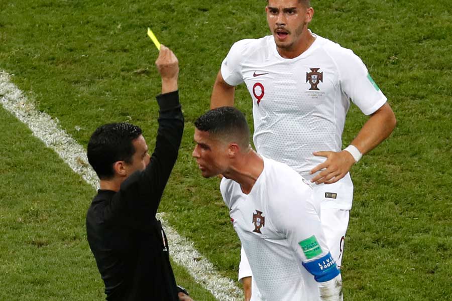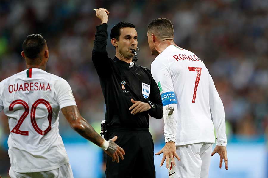 ロナウドがウルグアイ戦で主審に猛抗議でイエローカード【写真:AP】