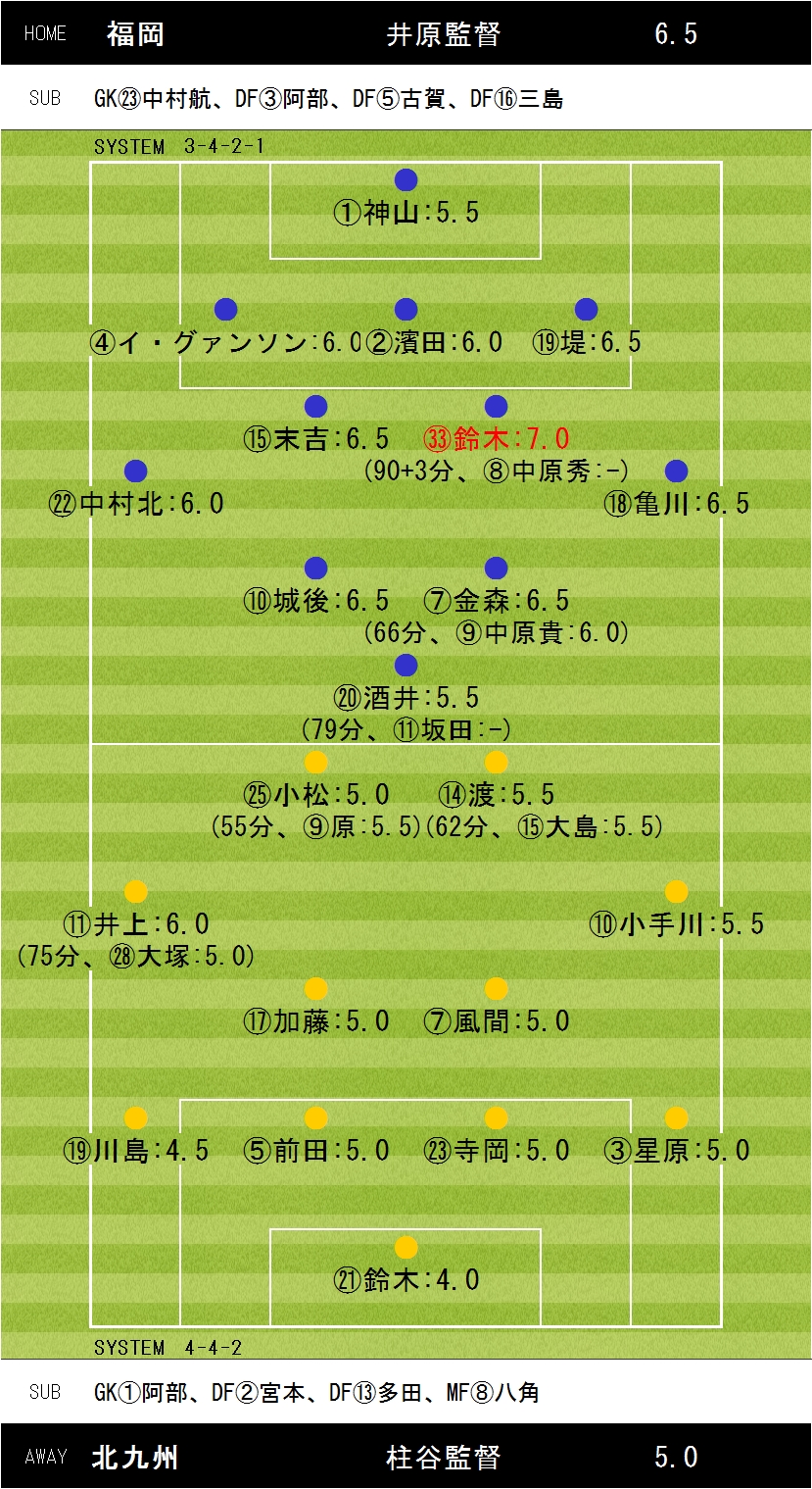 4-2【7分:金森(福岡)、19分:城後(福岡)、23分:
