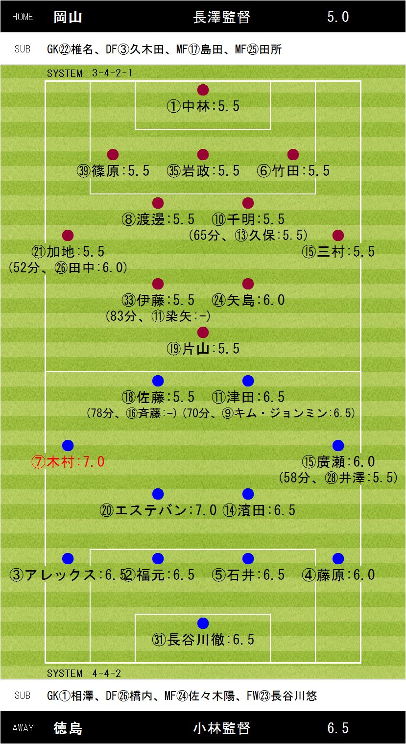 0−3【32分:木村(徳島)、53分:木村(徳島)、82分:エステバン(徳島)】