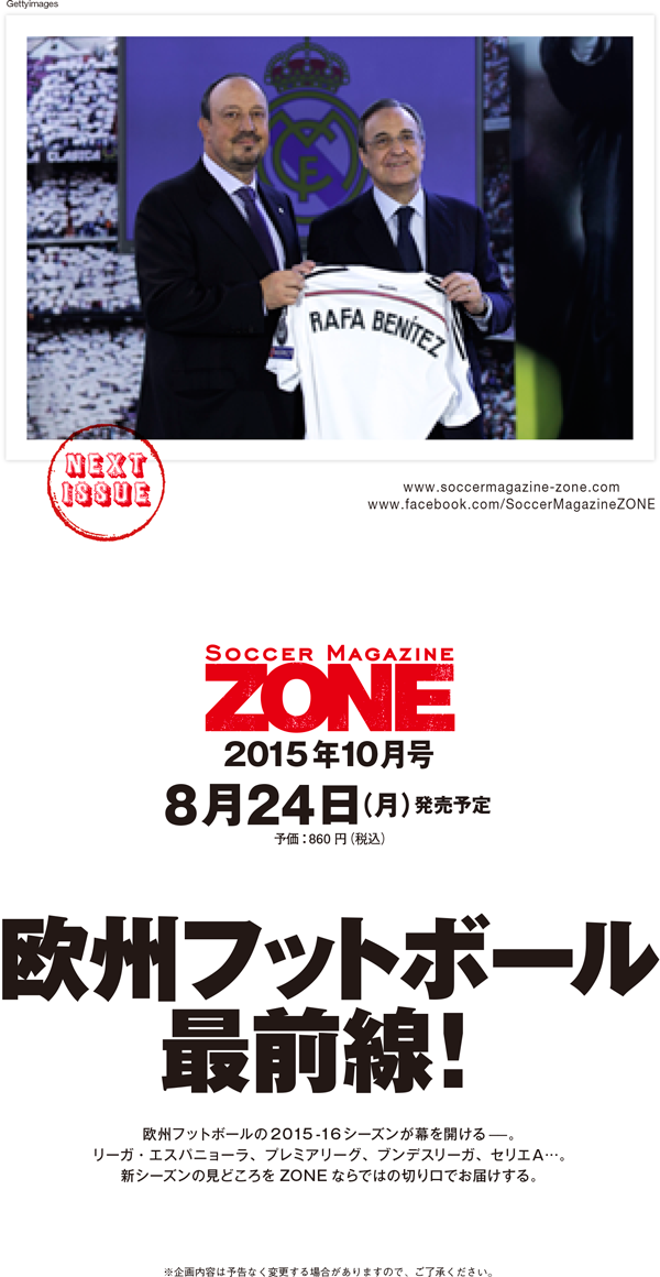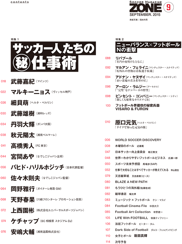 - Soccer Magazine ZONE No,9 2015年7月24日(金)発売