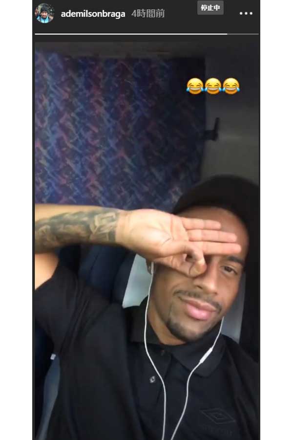 【写真】アデミウソンが公式インスタグラムで公開、流行ポーズをバス内で成功させた様子