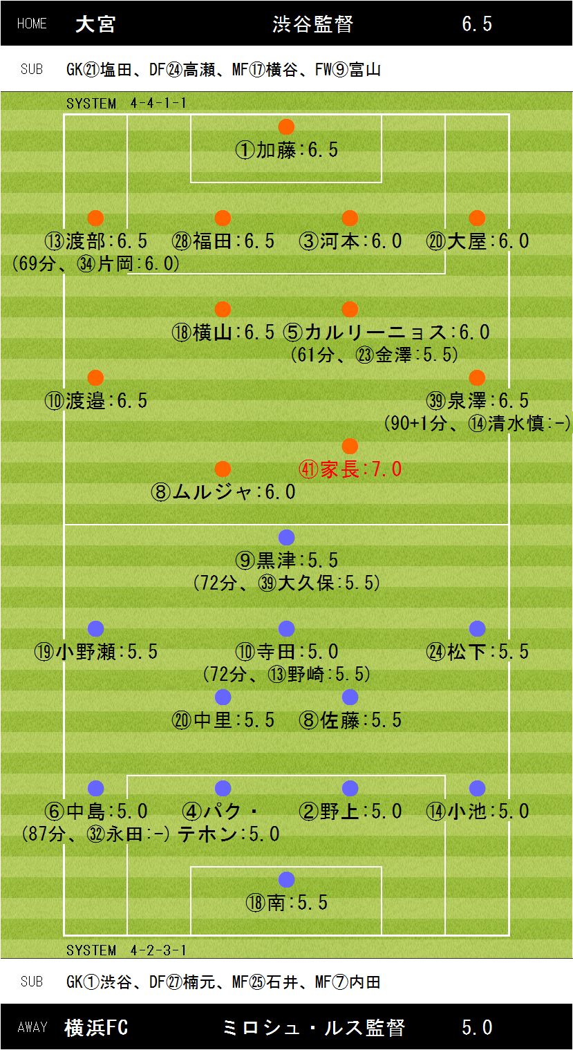 3-0【5分:渡邉(大宮)、8分:家長(大宮)、63分:泉澤(大宮)】