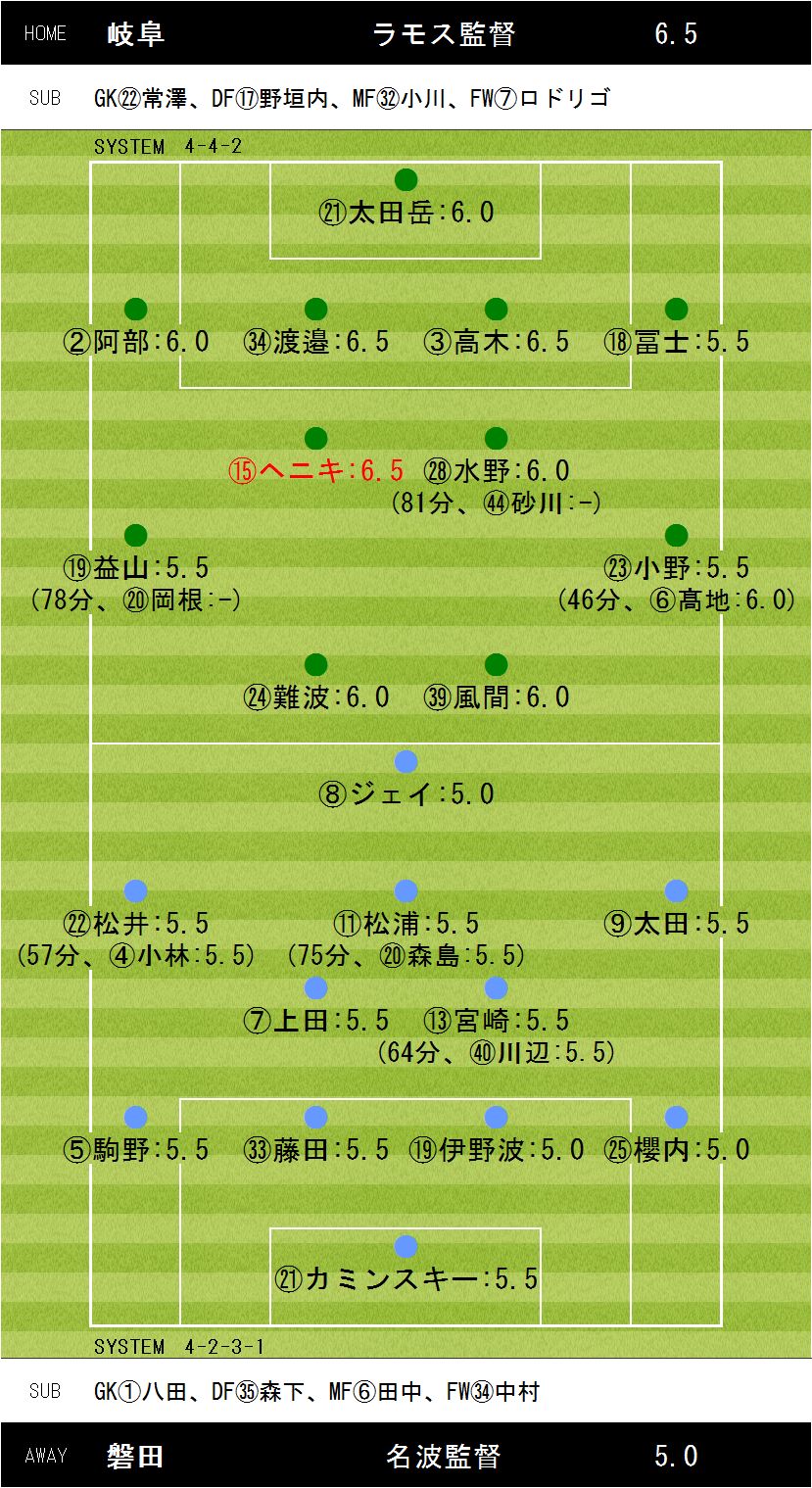2-0【63分:オンゴール(岐阜)、87分:オウンゴール(岐阜)】