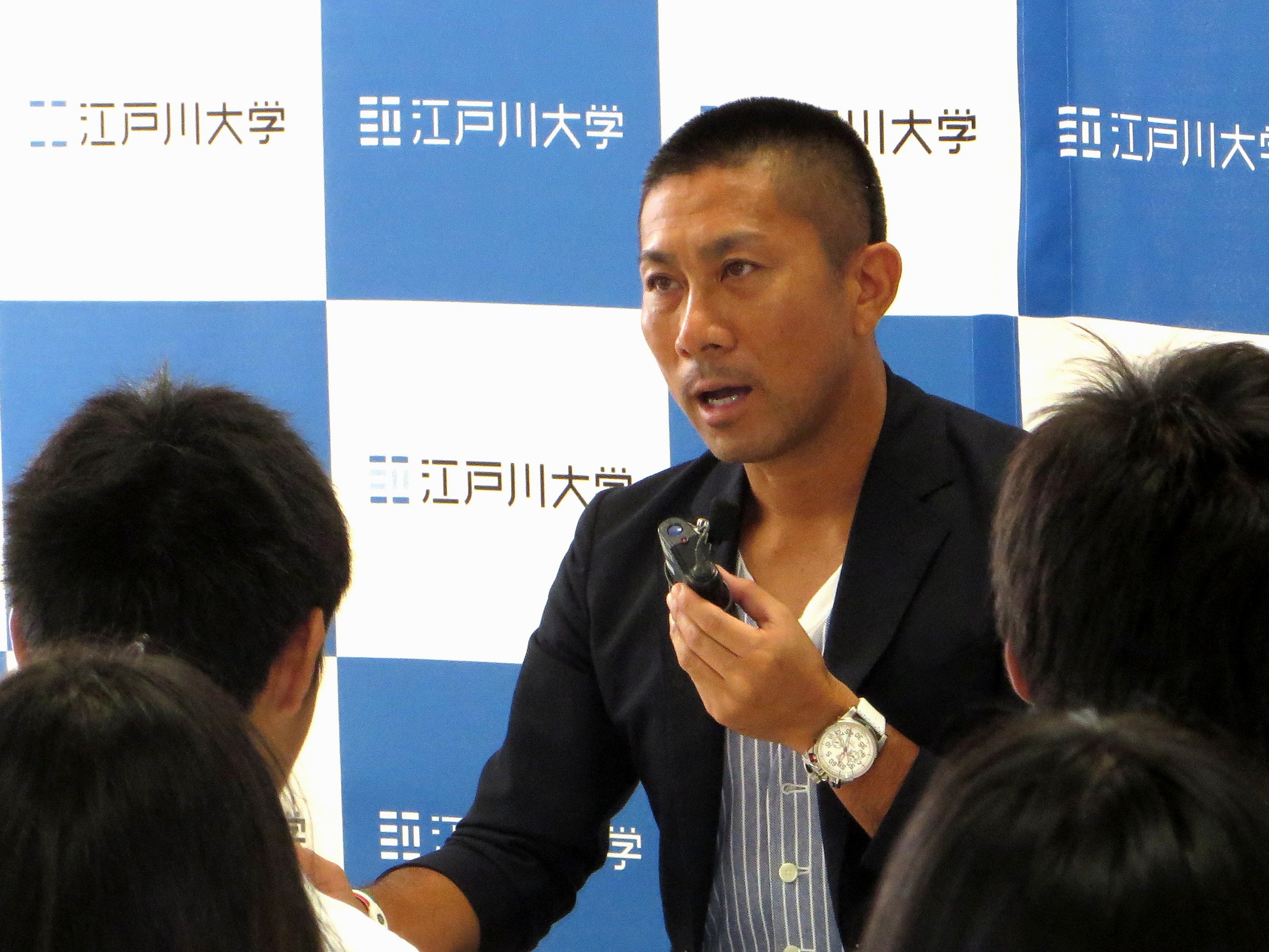 サッカー元日本代表の前園真聖氏は1日、千葉県流山市の江戸川大学で、来年度から社会学部現代社会学科に開設されるレジャー・スポーツ・マネジメントコースのオープンキャンパス特別イベントに参加し、講義を行った。