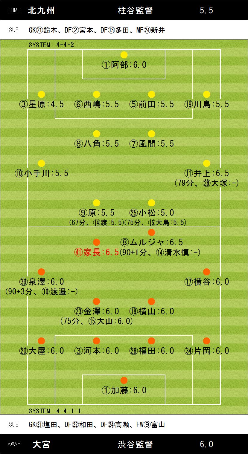 ギラヴァンツ北九州vs大宮アルディージャ1-2【13分:家長(大宮)、34分:ムルジャ(大宮)、36分:井上(北九州)】18時キックオフ 会場:北九州市立本城陸上競技場天候:晴 入場者数:2,617人