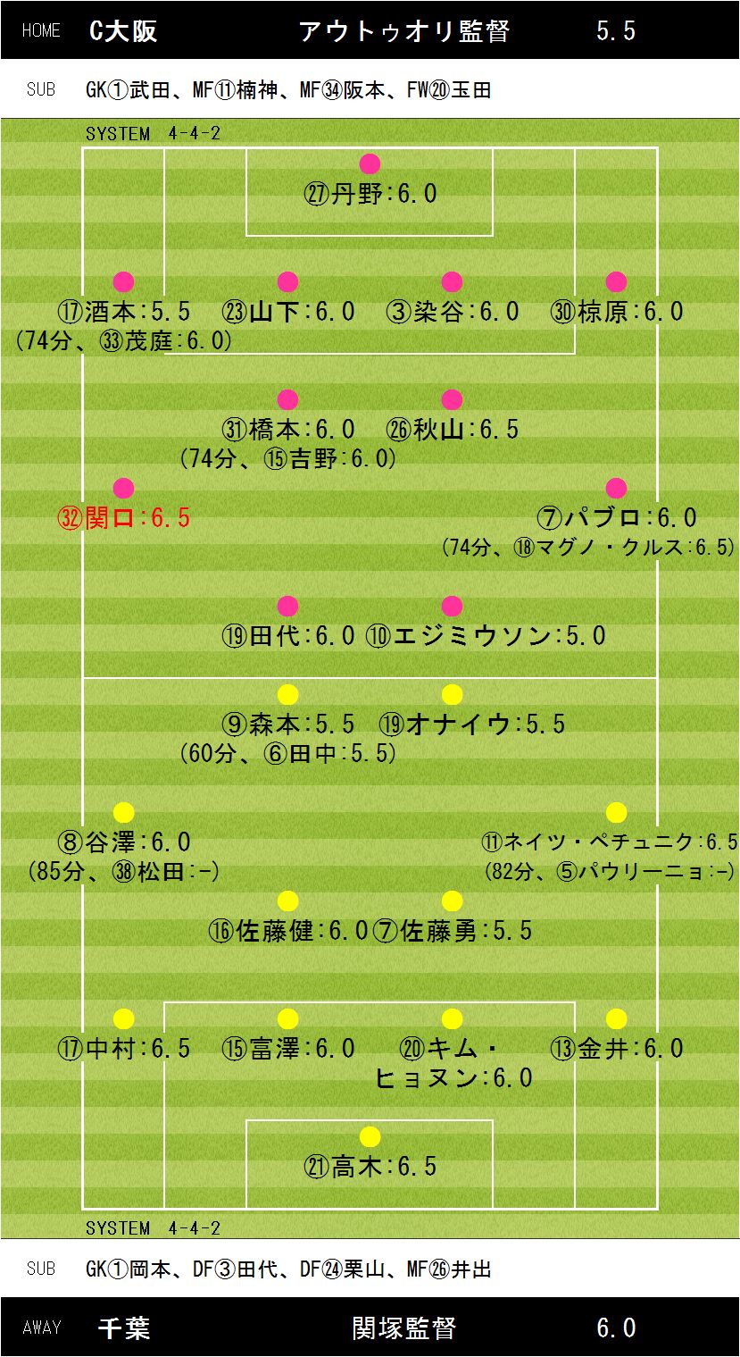 1−1【70分:ネイツ・ペチュニク(千葉)、90+2分:マグノ・クルス(C大阪)】