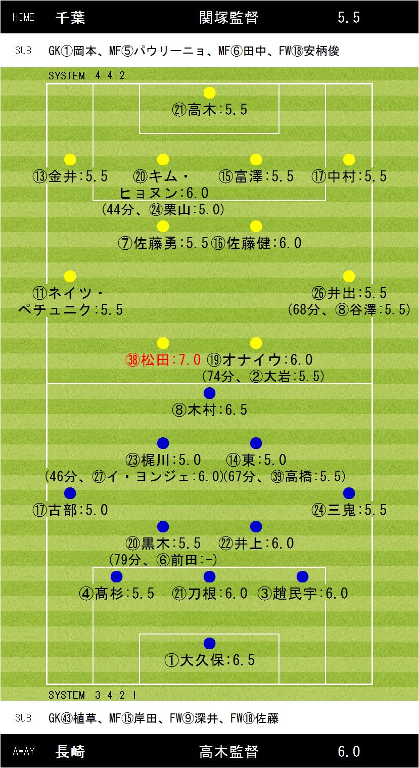 1−1【32分:松田(千葉)、62分:木村(長崎)】