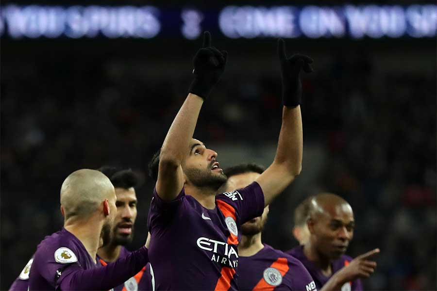 【写真】シティMFマフレズ、トットナム戦でゴール後に事故で亡くなった古巣レスター会長に捧げたパフォーマンス