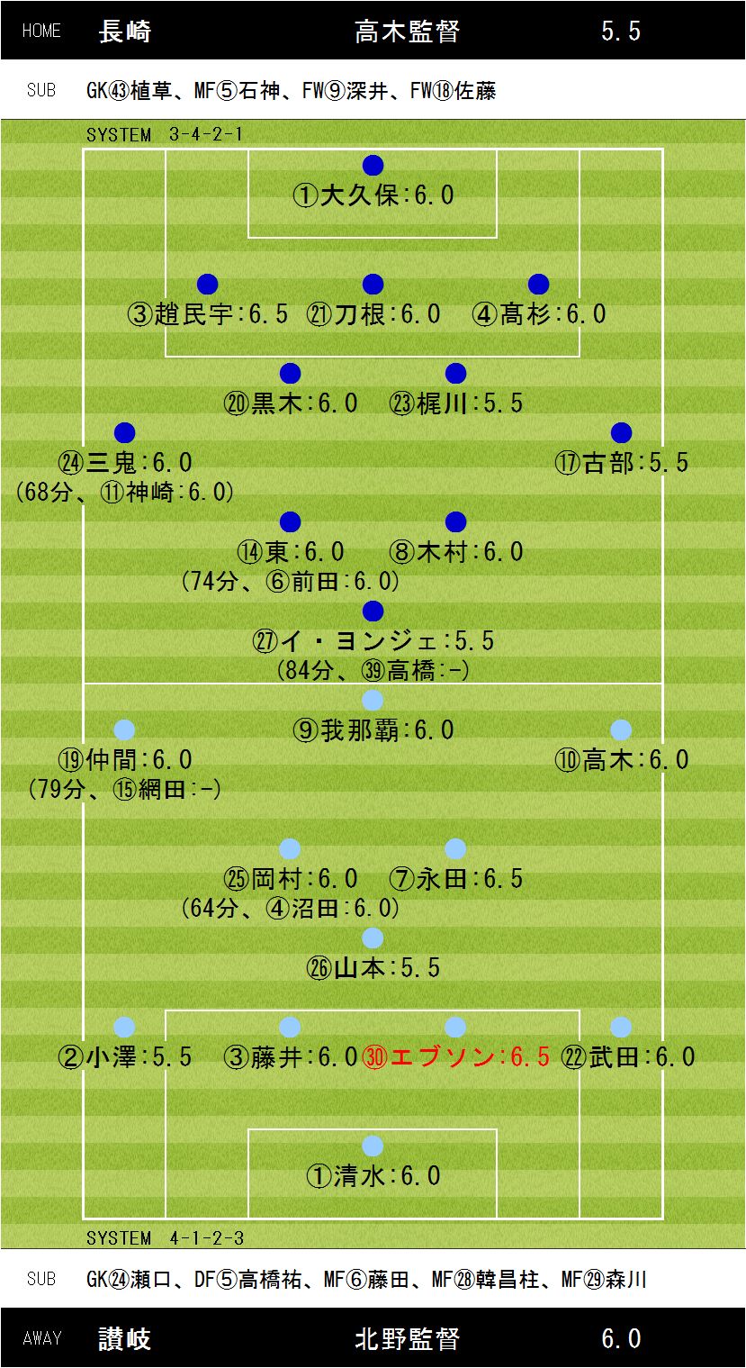 18時キックオフ 会場:長崎県立総合運動公園陸上競技場