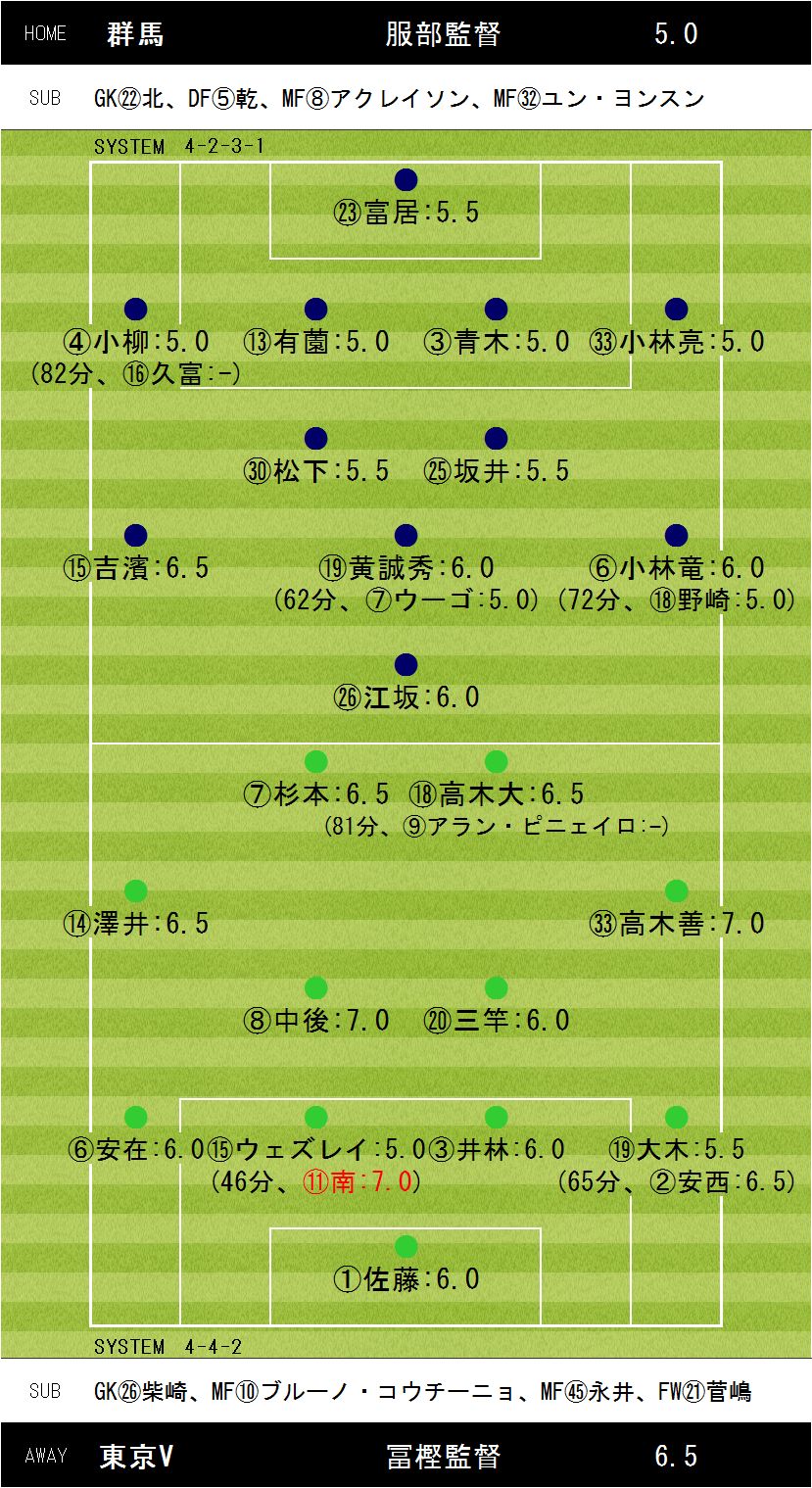 ザスパクサツ群馬vs東京ヴェルディ1−3【3分:井林(東京V)、36分:吉濱(群馬)、69分:中後(東京V)、72分:南(東京V)】18時キックオフ 会場:正田醤油スタジアム天候:曇 入場者数:3,375人