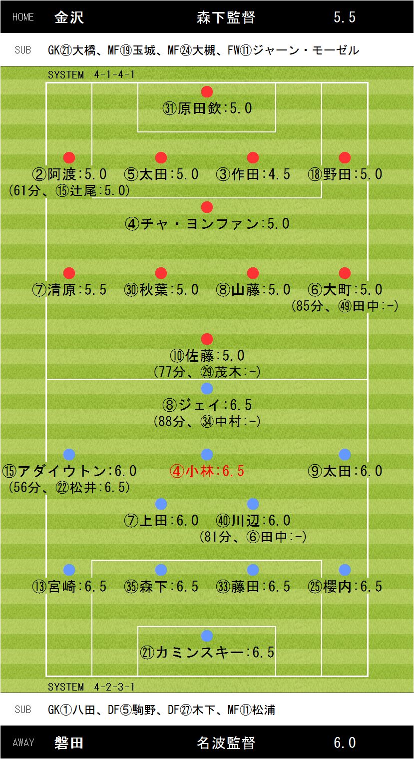 0−3【16分:小林(磐田)、77分:ジェイ(磐田)、90+1分:松井(磐田)】