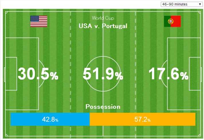アメリカは前半と比較して相手にボールを持たれてしまったがナニとクリスチアーノ・ロナウドという2人のキープレーヤーのケアを怠ることはなかった。ポルトガルはチーム全体で88%のパスを成功させたが、ナニとクリスチアーノ・ロナウドのパス成功率はそれぞれ66.7%と73.5%と平均を大きく下回った。敵陣でのパスに限るとクリスチアーノ・ロナウドの成功率は66.7%まで落ちている。