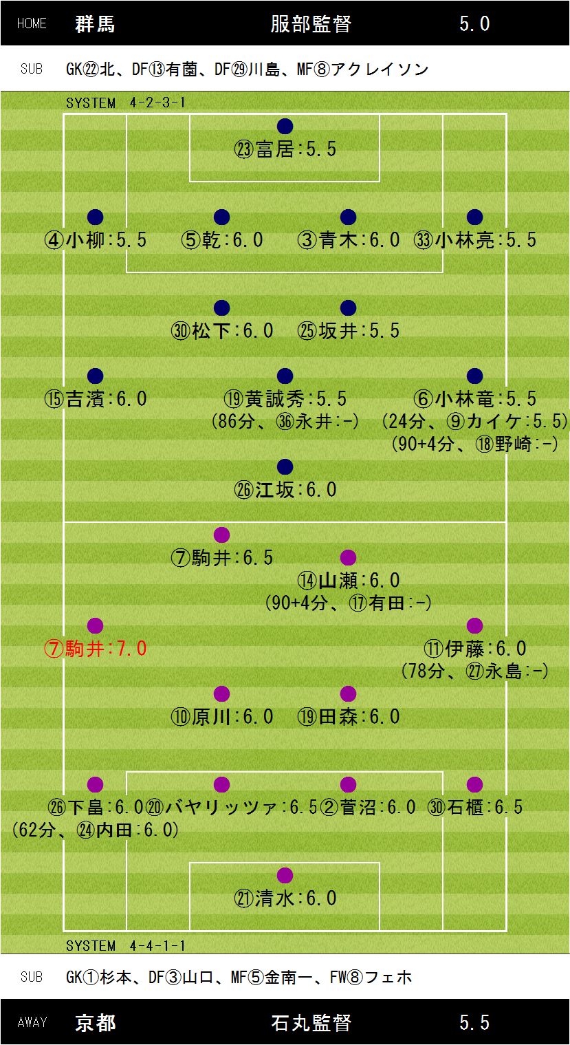 1−1【27分:江坂(群馬)、52分:駒井(京都)】