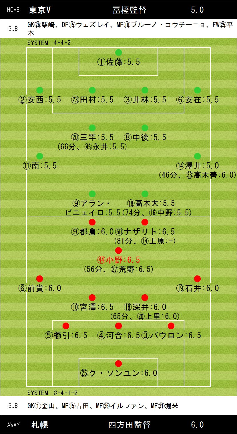 0−2【33分:小野(札幌)、87分:上里(札幌)】