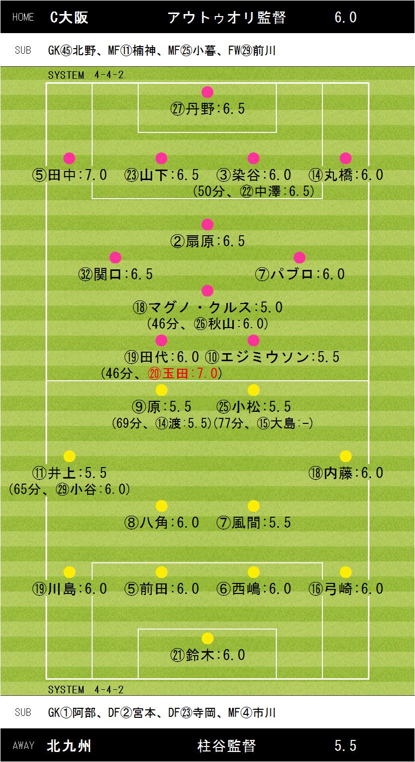 1−0【60分:田中(C大阪)】
